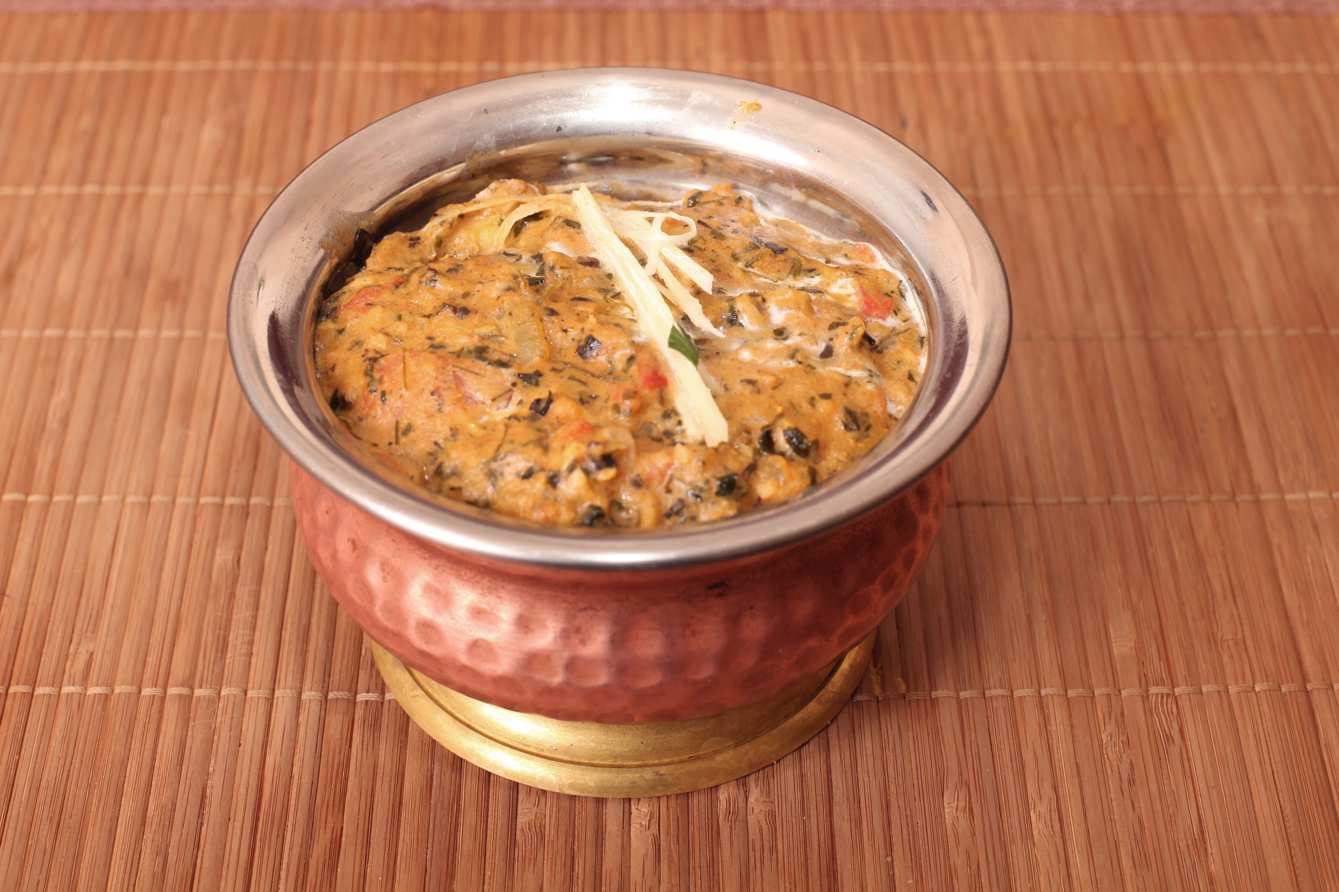 Kawałki jagnięciny w kremowym sosie z dodatkiem suszonych liści kozieradki