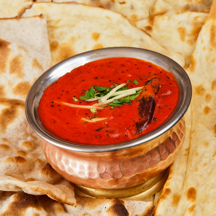 Smażone krewetki, gorczyca i chilli w gęstym sosie cebulowo – pomidorowym
